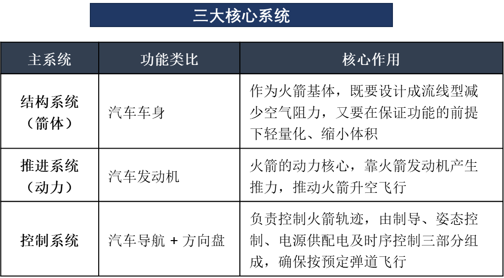 运载火箭就像航天领域的 “专属货车”,靠火箭发动机产生的推力,把卫星、载人飞船、空间站等航天器精准送进预定轨道。它的核心由三大主系统构成,类比成汽车的核心部件更好理解: