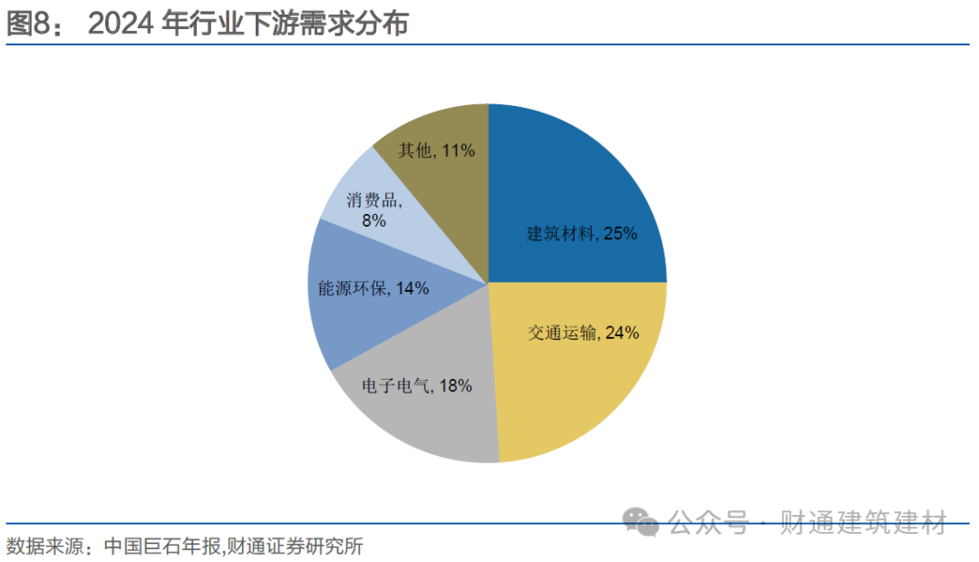 供给方面,近几年行业产能投放处于高位,2020年-2024年行业年产量分别为536/601/661/704/738万吨。且新进入的企业和此前未在高端领域有突破的公司大部分产能集中于传统行业,在目前地产和基建需求持续承压的情况下,传统领域在下游需求不足的情况下,价格也难有表现。