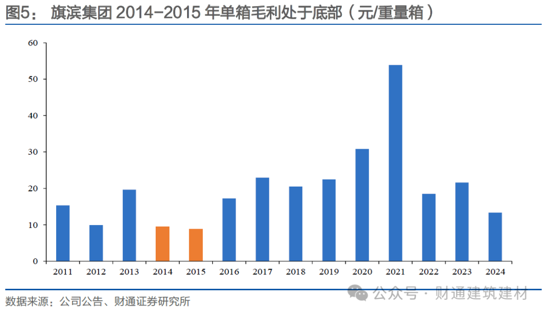 具体看企业端,2014-2015年旗滨集团、南玻A和中国玻璃归母净利润规模分别为2.21/1.71、8.74/6.25、0.02/-4.26亿元,同比分别变动-42.90%/-45.08%、-48.48%/-39.03%、-97.79%/利润转负。具体从单箱毛利看,2014-2015年旗滨集团单箱毛利分别为9.4/8.8元/重量箱,而2021年高点毛利为53.9元/重量箱。