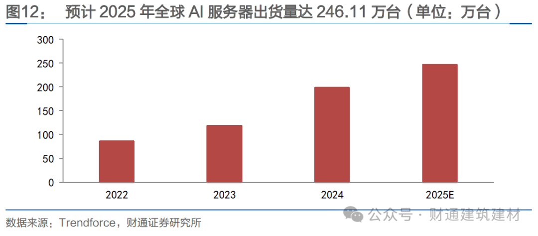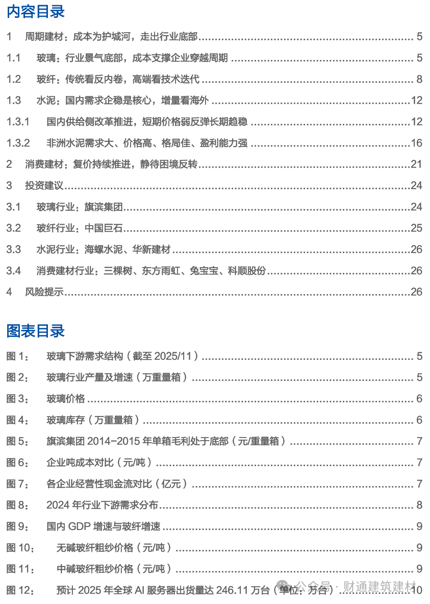 玻纤性能良好广泛应用于工业各领域,包括建筑材料(占25%)、交通运输(24%)、电子电气(18%)、能源环保(14%)、消费品(8%)等。而传统领域方向,9月初,中国玻璃纤维工业协会发布了相关文件将反内卷正式引入玻纤行业,未来玻纤粗纱价格中枢有望稳步向上;而新领域方向,随着人工智能技术和应用的快速发展,AI服务器需求强劲,同时AI服务器需求摒弃了传统的电子布,转向低介电(Low-Dk)电子布, AI服务器不断地升级对低介电子布的要求不断提升,产品的迭代也带来价格的提升和企业单位盈利的提升。
