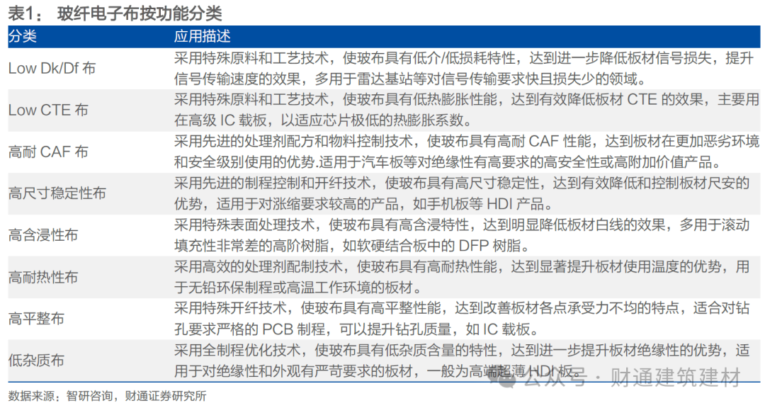LowCTE布:具有低气泡、低膨胀系数等特点,可显著提高基板可靠性,主要用于半导体封装基板领域;