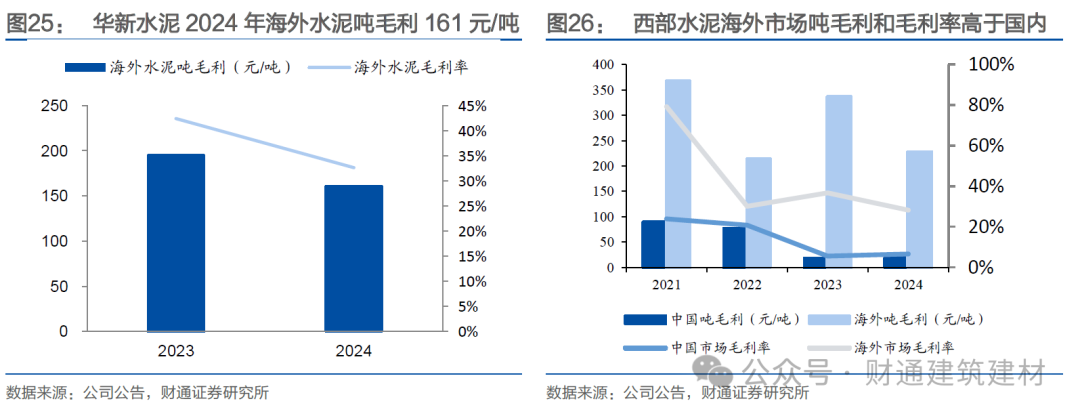 高价格支撑起高利润。虽然非洲综合成本高于国内,但是在高价格的支撑下,叠加国内企业持续进行技术升级和降本增效,非洲业务毛利远超国内。西部水泥2024年海外吨毛利超200元/吨,而国内仅不到20元/吨;国内/海外水泥销量占比为83%/17%,毛利占比分别为28%/72%;华新水泥2023-2024年海外吨毛利为195/161元/吨,毛利率分别为42%/33%。2024年西部水泥子公司Dugongo/NCSC净利率分别为16%/42%,同期Dangote净利率为9%,显示我国在成本控制、降本降费方面较非洲本土企业更具优势。