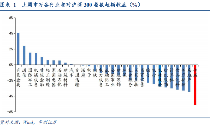 上周传媒(申万)指数整体上涨3.86%,同期沪深300指数整体上涨1.28%,板块跑赢沪深300指数5.14%,位列所有板块第31位。