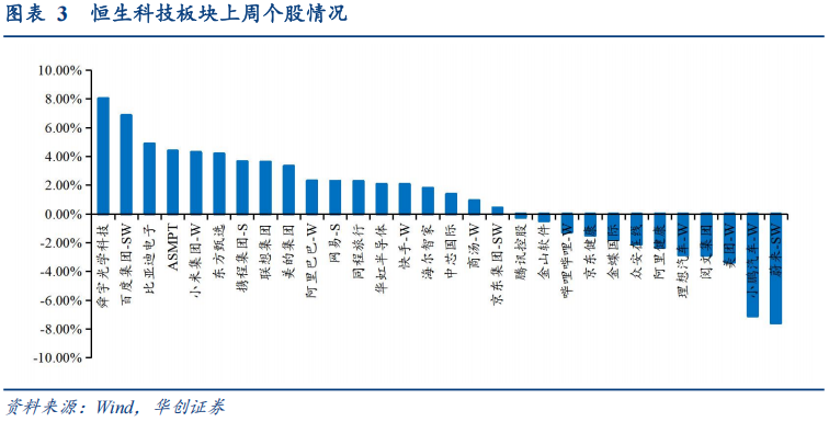 港股方面,上周恒生科技指数上涨1.13%。巨头加速算力布局,我们持续看好科技板块的引领作用,同时看好互联网权重资产的配置价值。建议关注腾讯、阿里、快手、美图、阅文、腾讯音乐、哔哩哔哩、网易、美团等。