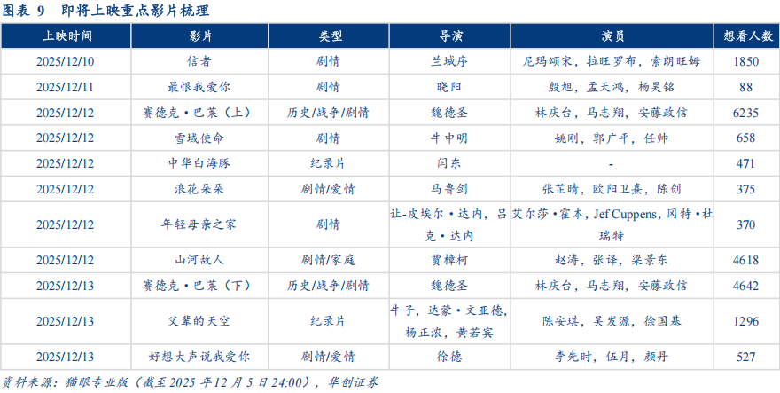 根据猫眼专业版,2025.12.8-2025.12.14待上映的影片包括《信者》、《最恨我爱你》、《赛德克·巴莱(上)》等。