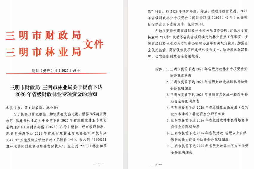 近日,三明市财政局、三明市林业局正式下达2026年省级财政林业专项资金计划(明财资环指〔2025〕60号),永安林业种苗中心成功获批成为“福建省省级保障性苗圃”,并获得省级财政林业专项资金107.02万元(其中省级保障性苗圃专项资金82.32万元、省级重点林木种子基地专项资金24.7万元)。这不仅是“十五五”期间三明市现阶段唯一新增入选单位,也是自2015年以来,种苗中心连续第十一年获得省级财政林木良种培育专项资金支持。