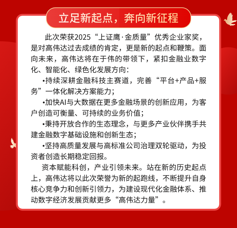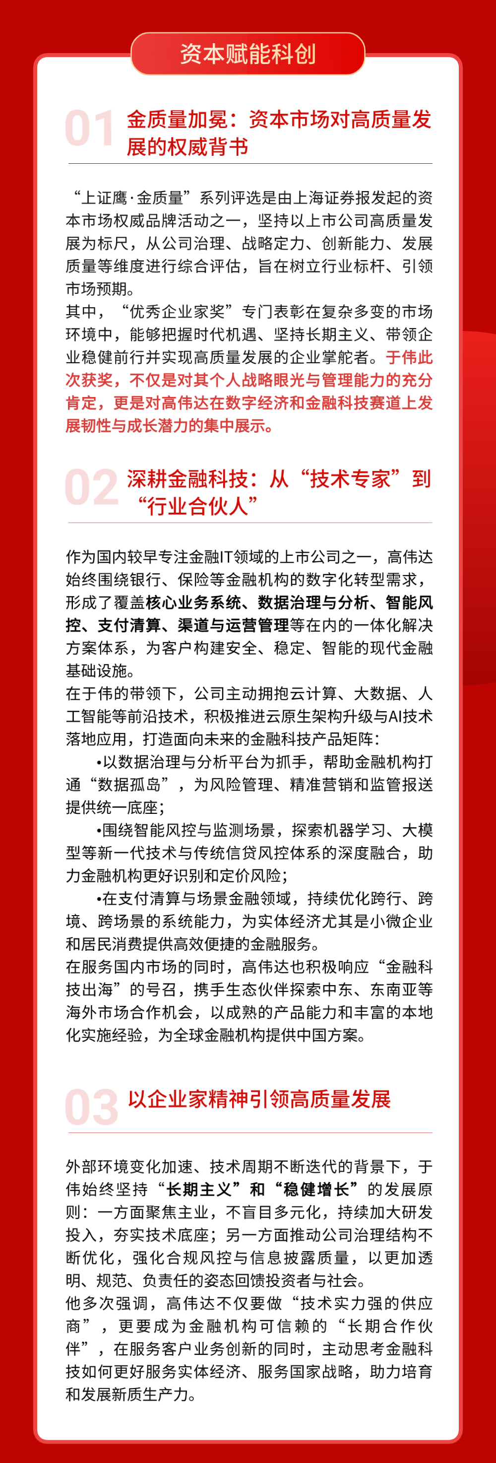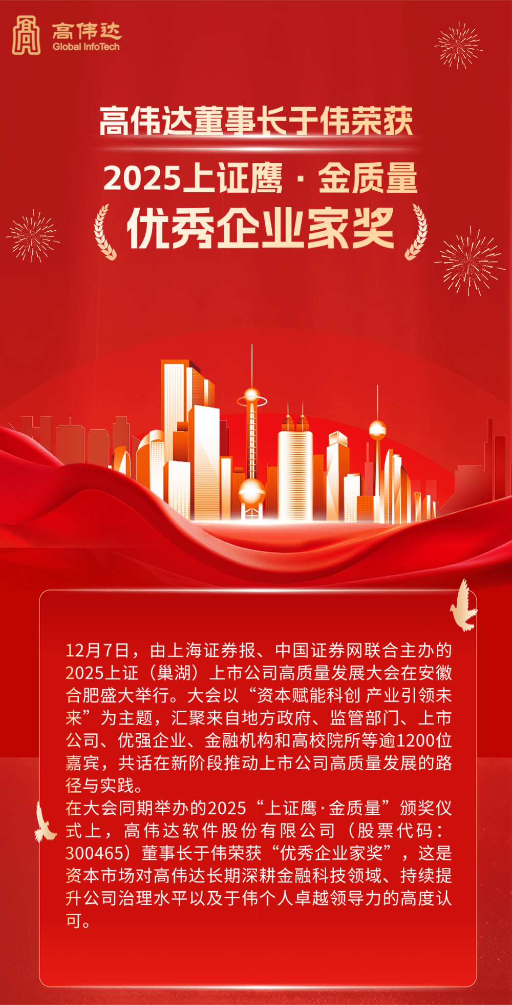【喜报】高伟达董事长于伟荣获2025“上证鹰·金质量”优秀企业家奖