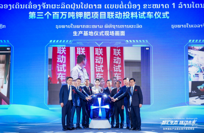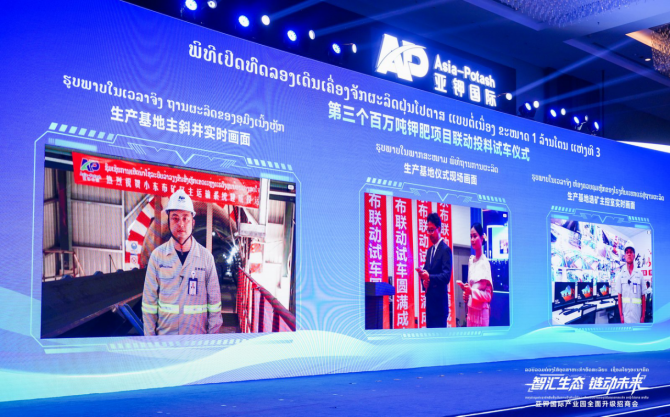 视频连线中,老挝甘蒙省现场机器轰鸣。一千多公里外的深圳会场,老挝工贸部部长马莱通·贡玛西,甘蒙省省委书记、省长万赛·彭沙万,老挝人民革命中央青年团书记通力·西苏里等领导,以及亚钾国际董事、总裁刘冰燕等高管团队登台,在全场嘉宾的见证下,为项目装置按下启动键。亚钾国际小东布矿区主运输系统建成投运暨第三个百万吨钾肥项目联动投料试车仪式的圆满成功,标志着亚钾国际开启300万吨产能时代。
