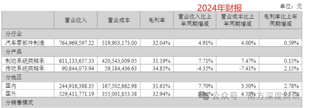 从2024年营收结构看,公司主业集中度极高:制动系统类轴承(含轮毂轴承、轮毂轴承单元)营收占比达79%,传动系统类轴承(含离合器分离轴承、驱动电机轴承等)占比12%,两类核心产品毛利率分别达31.2%和34.9%,展现出稳定的盈利能力。
