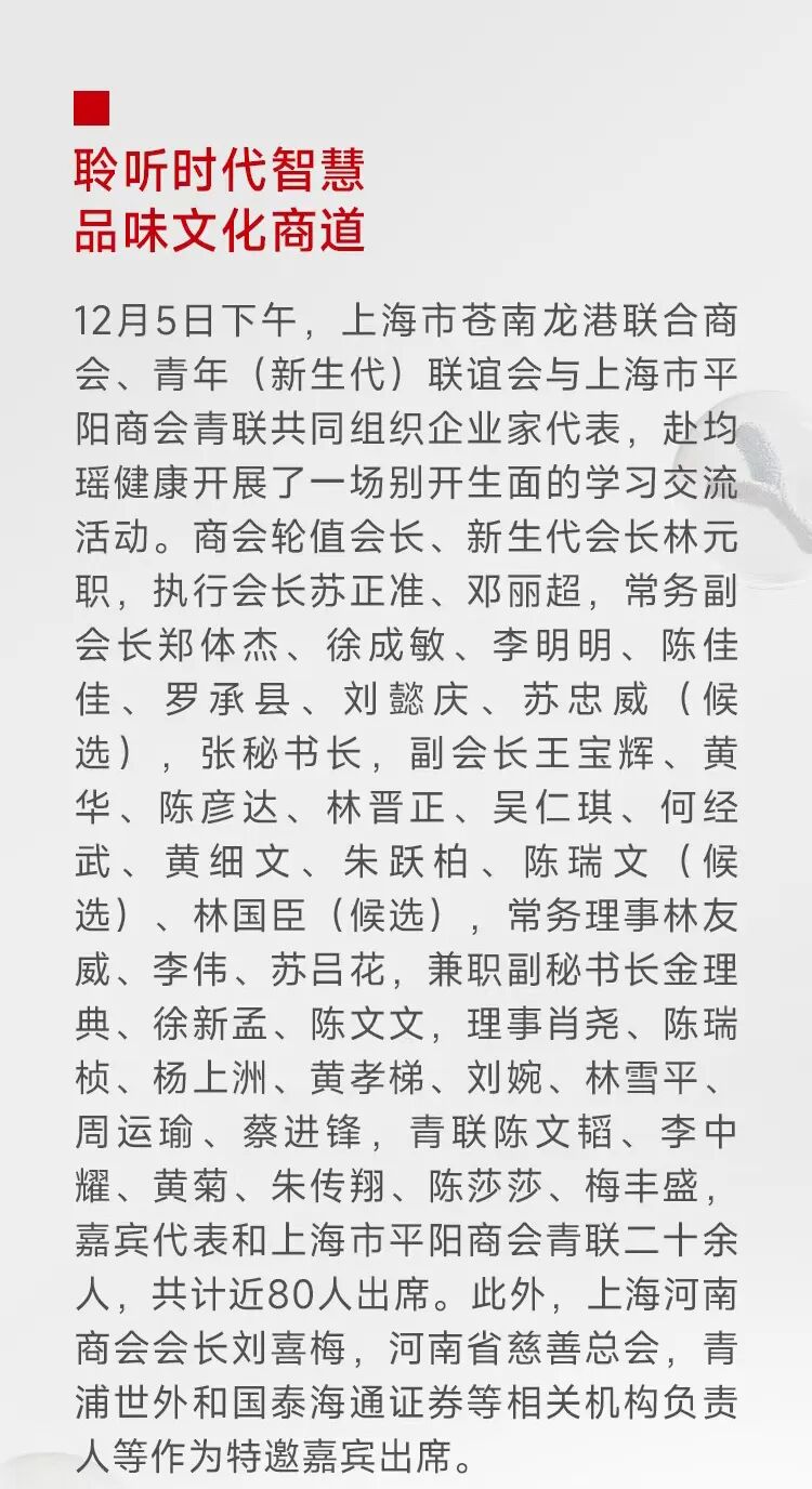 上海市苍南龙港联合商会和平阳商会青联走进均瑶健康