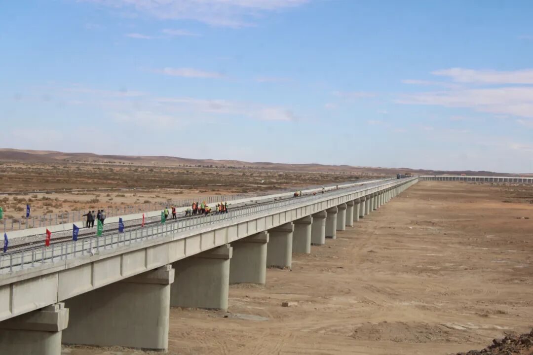 当地时间12月8日,由中国铁建承建的非洲最长重载铁路桥PK330大桥实现轨道铺通,标志着阿尔及利亚西部铁路矿业线建设取得阶段性成果。
