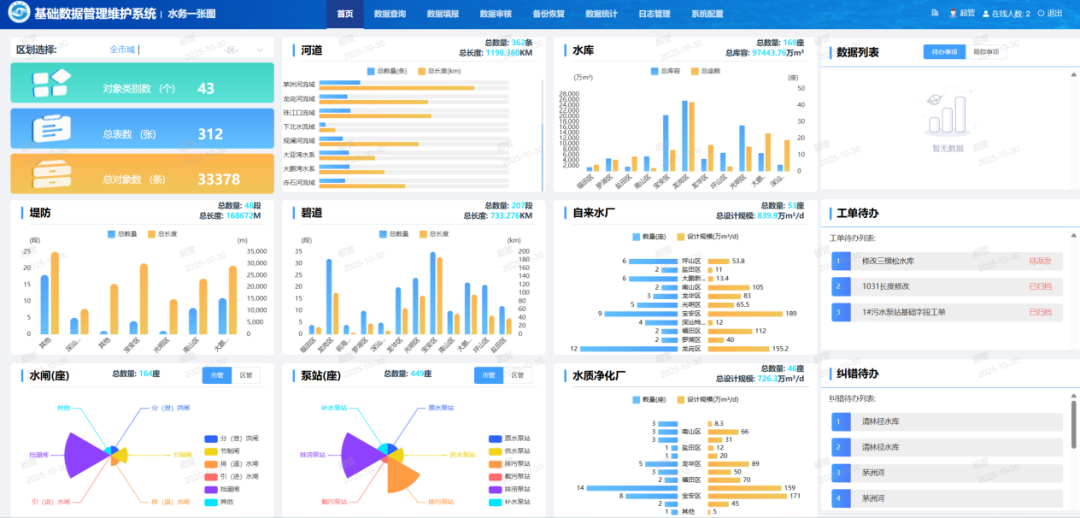 项目实现了水务资产数据化,以统一的标准完成“河、库、厂、网、站、线”等6大类30小类约5300多个重点水务对象的赋码及基础数据归集、治理和共享,建设”一物一码”水务数据底板,形成“一数一源”水务数据治理;实现业务场景数字化,打造了水旱灾害防御、水量平衡、水环境达标、工单管理、水土保持等重点业务数字孪生场景。