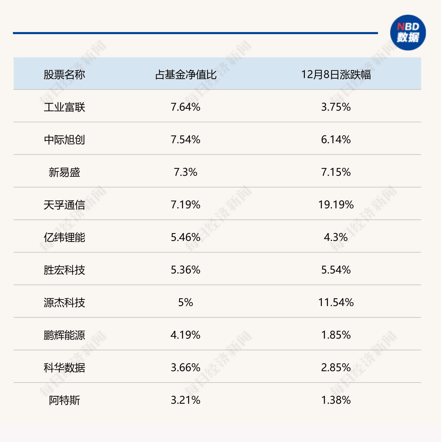 与红土创新科技创新相似,第三大重仓股天孚通信涨停,同时源杰科技上涨11.54%,另外新易盛、中际旭创、仕佳光子、胜宏科技、东山精密、长飞光纤等多只个股单日涨幅超过5%,并且这些个股今日还在继续上涨。