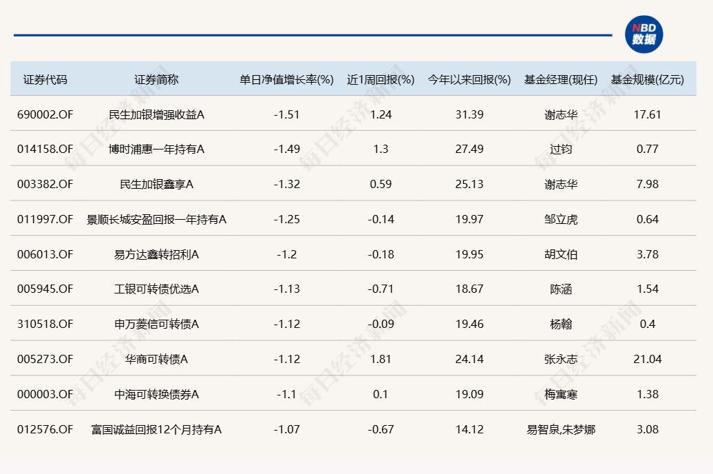 3.单日债基涨跌幅榜