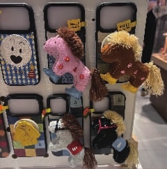 12月8日,长沙万象城负一楼莱特斯文创展示台上,马年限定款立体毛绒小马挂饰挂在帆布包上,格外吸睛,一旁的手机壳上也配有磁吸款布艺小马支架,还搭配有花朵、撞色马蹄等细节装饰。