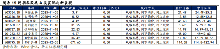 本报告摘自华安证券2025年12月8日已发布的《【华安证券·金融工程】金工周报:摩尔线程上市,年内打新收益最高新股 》,具体分析内容请详见报告。若因对报告的摘编等产生歧义,应以报告发布当日的完整内容为准。
