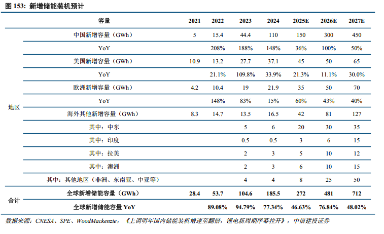 储能需求旺盛,或迎来周期上行。136号文实施后,国内储能市场正在加速市场化,电池排产旺盛和储能招标需求高增,与此前“取消强制配储”对国内储能需求的悲观预期形成强烈反差。在各地市场化储能政策(容量补偿、容量电价等)以及新能源全面入市、峰谷价差拉大的背景下,国内储能市场在政策和市场化推动下走向良性发展。国内储能招标高增,1-9月份国内储能项目新增招标255.8GWh,同比增长97.7%。预计2025-2027年国内储能新增装机达到130GWh、160GWh、210GWh。