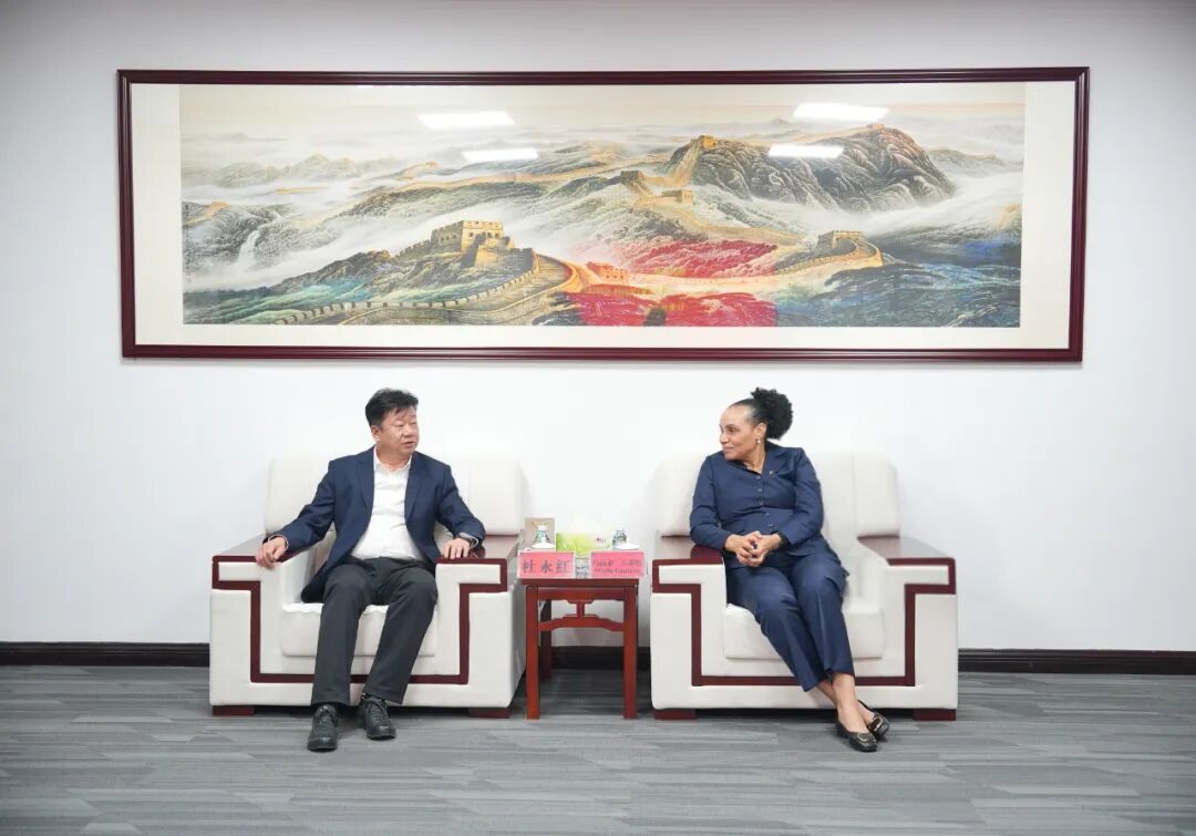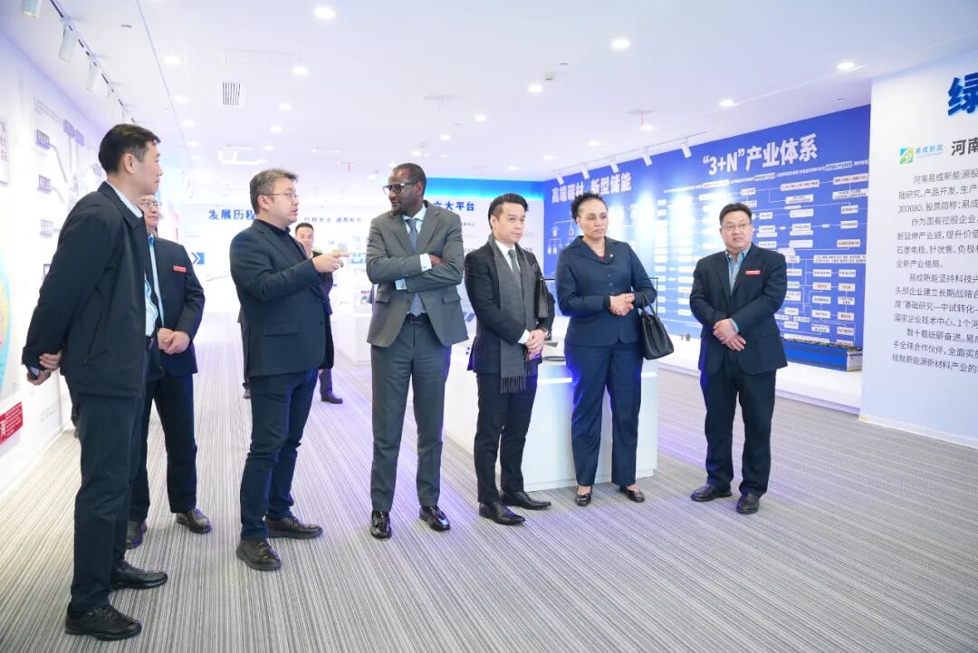 12月5日下午,莫桑比克驻华大使玛丽亚·古斯塔瓦(Maria Gustava)一行在参加河南省政府主办的“豫见四海”活动期间,到访易成新能进行参观交流。莫桑比克澳门商会会长陈景富陪同参观。易成新能党委书记、董事长杜永红出席会议。