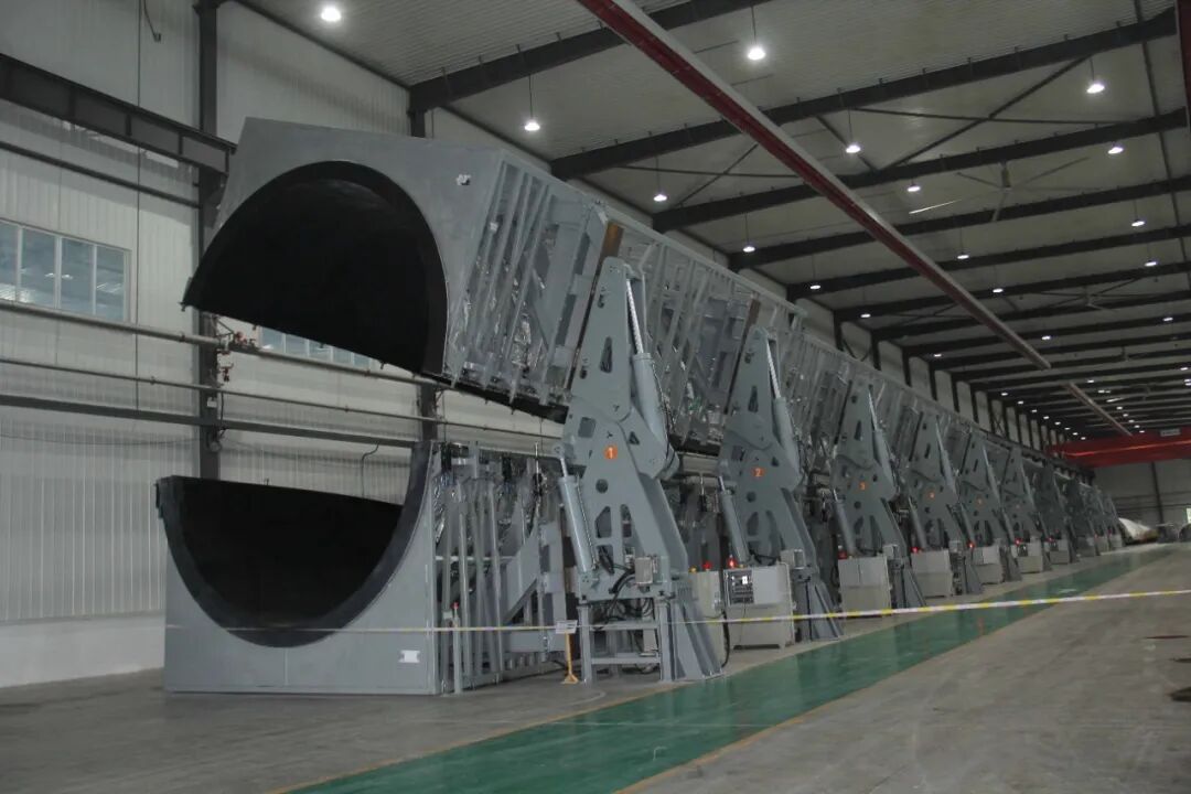 在大型风电叶片制造过程中,翻转系统的稳定性、精准度与安全性直接关系到生产效率与人员安全。双一科技自研双关节翻转系统,通过PLC智能控制系统实现精准调控,确保双关节翻转全程同步运转,从根本上消除了传统设备常见的翻转死点问题,让大型叶片模具翻转过程更平稳、作业更安心。