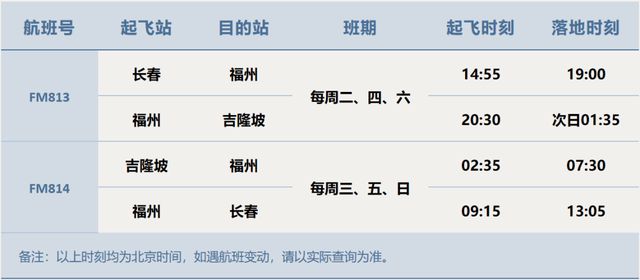 该航线执飞机型为波音737-800(B738),每周三班往返于长春=福州、福州=吉隆坡之间,为旅客提供便捷的中转选择,通过福州机场高效衔接中国东北与东南亚两大区域。