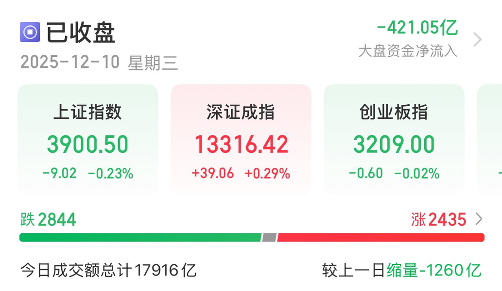 截至收盘,上证指数跌0.23%,深证成指涨0.29%,创业板指跌0.02%,北证50跌0.85%。全市场成交额1.79万亿元,较上日成交额缩量1260亿元。