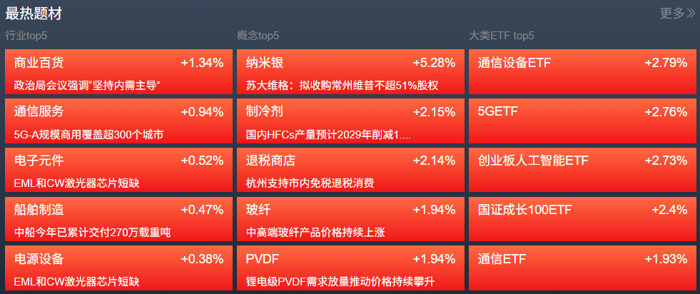 在市场连续反弹之后,重磅会议靴子落地,部分资金趁机获利了结,导致市场出现小幅调整。结构上看,美国宣布允许英伟达向中国出售H200芯片,刺激了AI算力产业链普涨。