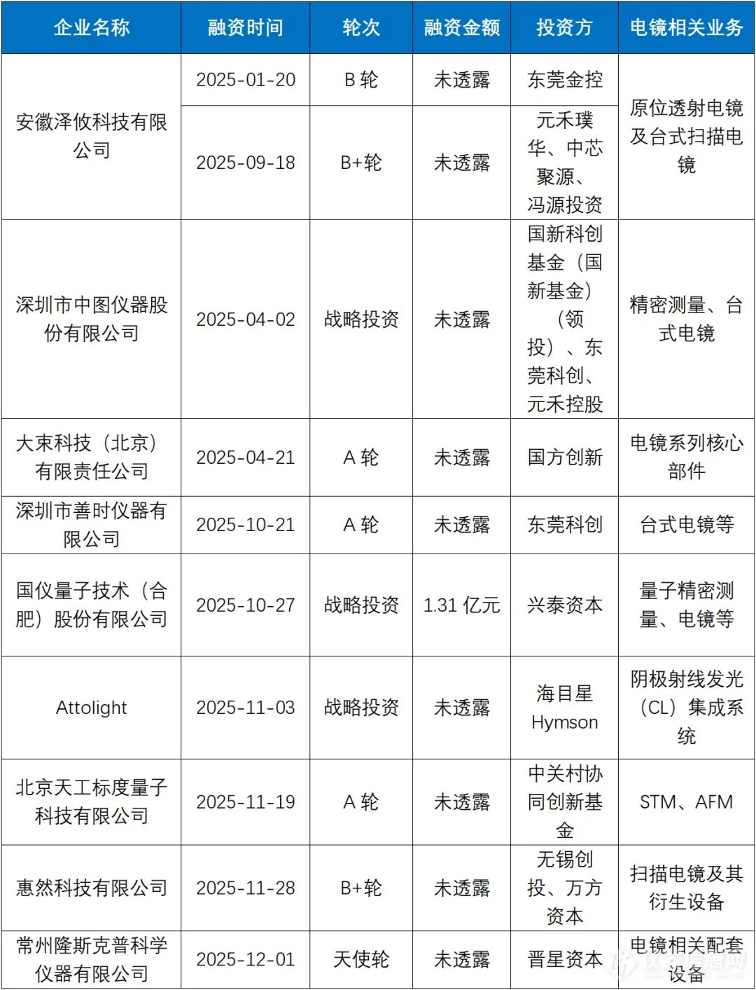据仪器信息网统计,2025年,10家电镜相关企业获得融资,呈现出“领军企业迈向纵深、产业链条补全强化”的鲜明特点。
