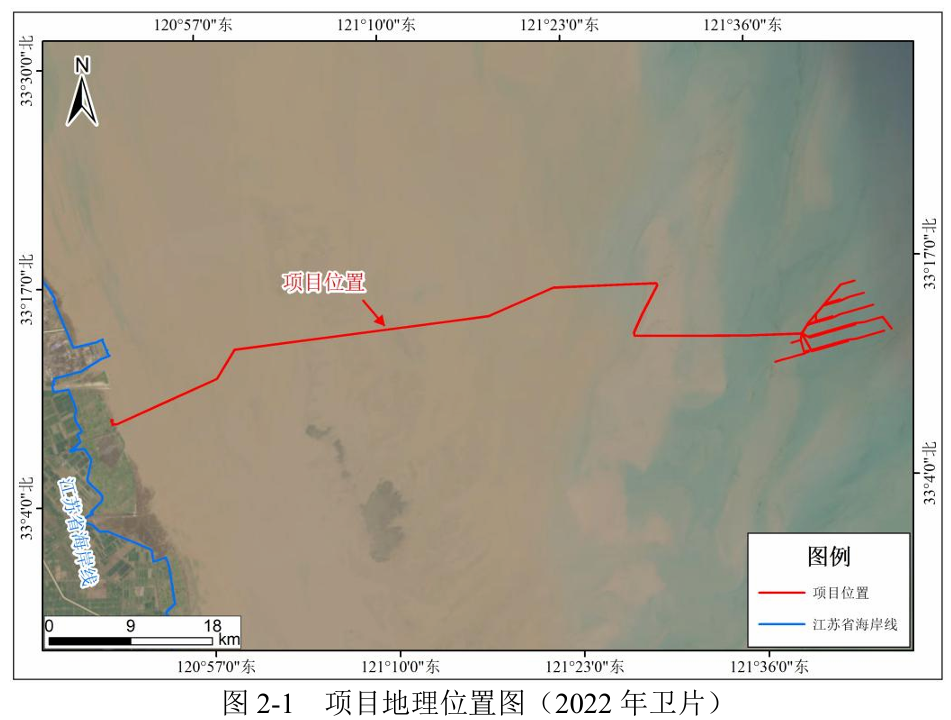国华东台H3-2#海上风电项目位于江苏省盐城市东台市东部海域,场址中心离岸距离约50km,东西长约9.9km,南北宽约4.1km,水深10~16m,规划面积38km²。