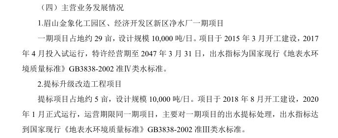 其关键在于眉山金象手中拥有的特许经营权剩余期限尚有21年,项目边界条件清晰,污水处理量已达到设计标准,污水处理单价稳定。