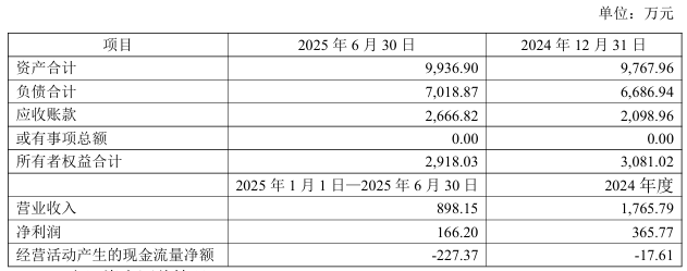 此外,根据大华会计师事务所出具的审计报告,2024年,眉山金象实现营业收入1765.79万元,净利润365.77万元;2025年上半年,其营业收入为898.15万元,净利润为166.20万元,盈利水平表现良好。