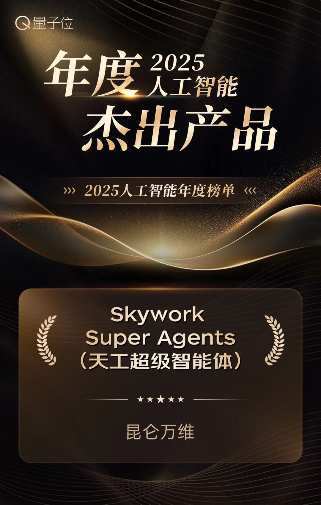 天工超级智能体(Skywork Super Agents)入选「2025人工智能年度杰出产品」