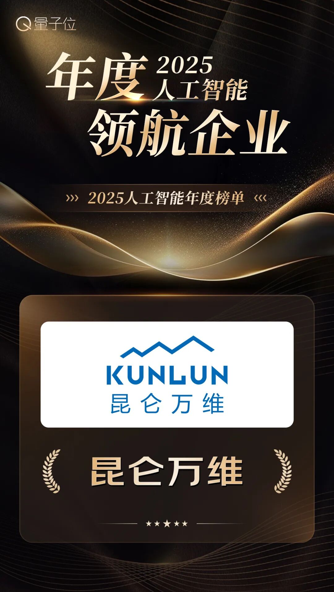昆仑万维凭借2025年扎实的技术实力和优秀的产品能力,一举入选「2025人工智能年度领航企业」、「2025人工智能年度焦点人物」、「2025人工智能年度杰出产品」三大榜单。