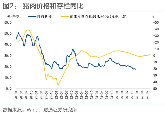 二是猪肉难以大幅走低,低基数下有望形成支撑。2024年末至2025年初供需失衡导致猪肉价格持续下跌,而目前来看,能繁母猪存栏同比在明年初将迎来拐点,产能去化逐步显现,但也需要注意,需求端在基本面弱势的前提下依旧表现低迷。