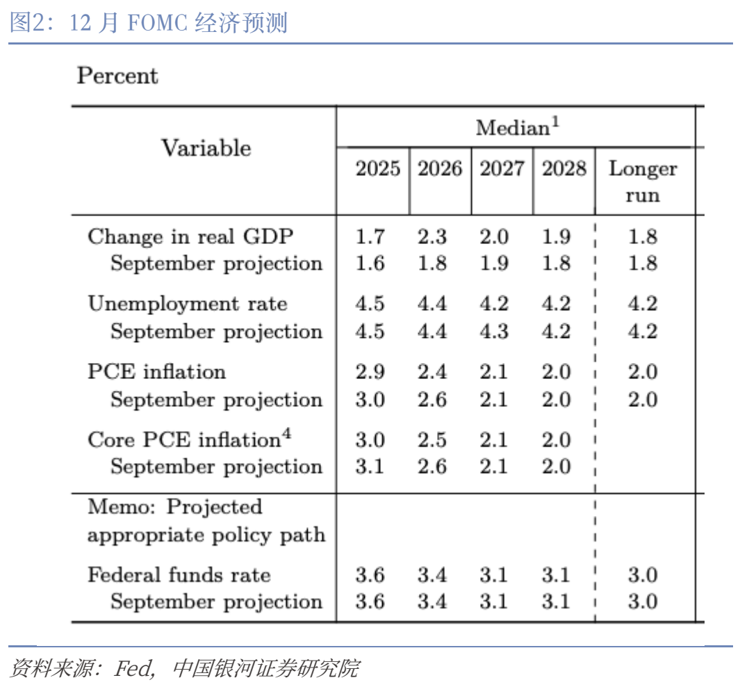 本文摘自:中国银河证券2025年12月11日发布的研究报告《降息温和偏鸽,内部分歧扩大——12月FOMC会议点评》