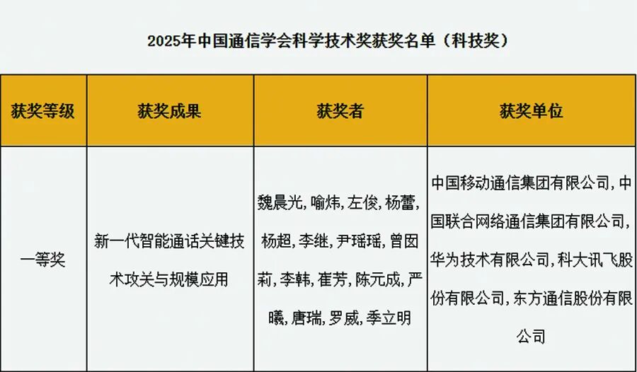 近日,中国通信学会2025年度科学技术奖评选结果正式揭晓。由东方通信股份有限公司(简称:东方通信)作为核心参与单位,联合中国移动、中国联通、华为、科大讯飞等行业领军企业共同攻关的《新一代智能通话关键技术攻关与规模应用》项目,成功荣获一等奖。
