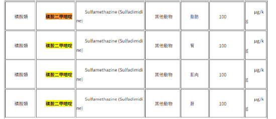 据悉,磺胺二甲嘧啶是一种磺胺类抗菌药,在养殖业中应用广泛。长期摄入过量的磺胺类药物,可能会导致人体出现过敏反应、泌尿系统损害等问题。根据我国《食品中兽药最大残留限量》(GB 31650-2019),磺胺类药物残留总量在所有食品动物(产蛋期禁用)中最大限量为100μg/kg。