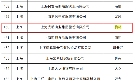 据悉,涉事品牌“梅林”为中华老字号。在中华老字号信息管理网披露的文件中,“梅林”关联公司为“上海光明肉业集团股份有限公司”。