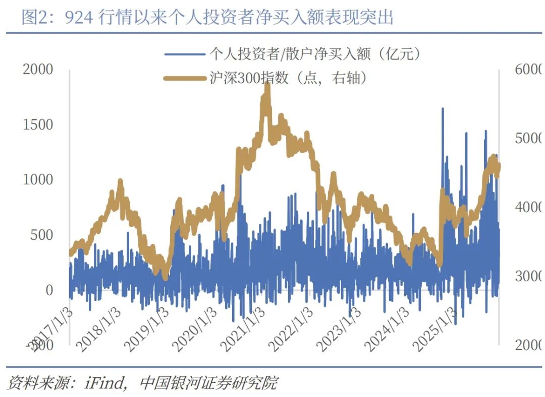 持续完善上市公司分红与回购机制,提升居民在资本市场中的获得感,助力居民财富的保值增值。当前,房地产投资属性弱化,利率呈现下行趋势。我国居民在金融资产配置上存在较大的增长空间,尤其是证券类金融资产,资本市场成为助力居民财富保值增值的关键力量。在此过程中,资本市场正逐步形成“双循环”机制:居民通过投资企业股票来对企业未来发展投票,被投资企业的成长壮大,又会通过资本市场将所创造的价值回报给投资者,进而增强居民消费意愿。对比本次924行情以来的情况,小单口径计算的个人投资者净买入额表现突出。