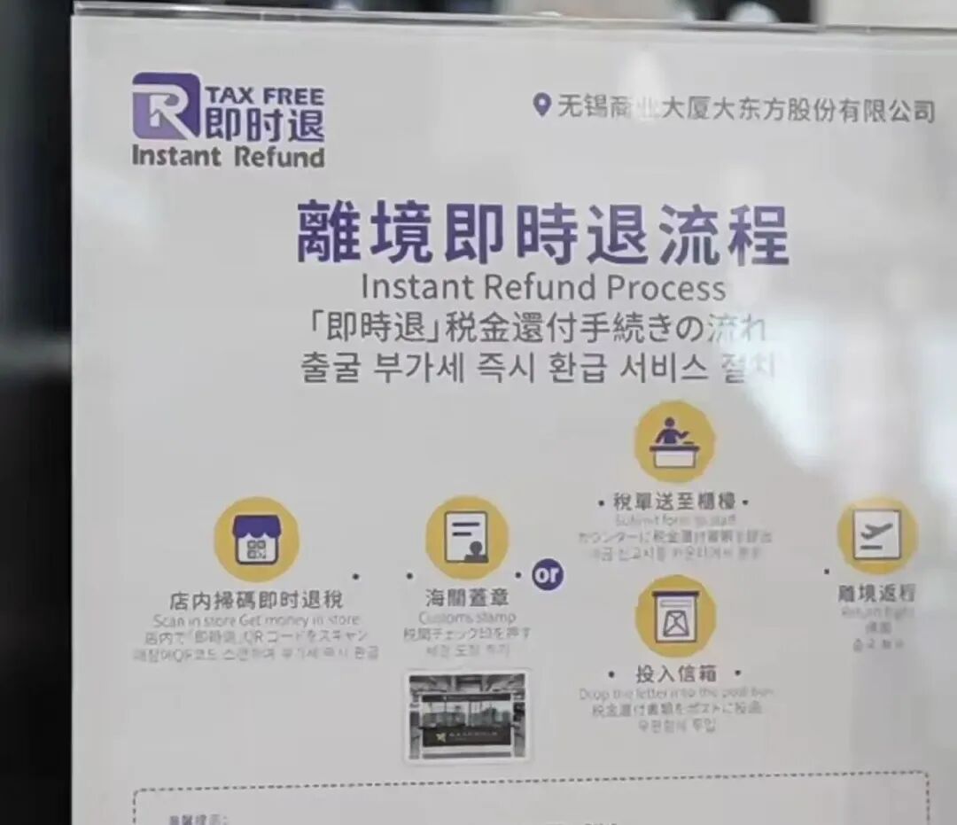 各类配套服务同步优化。大东方百货是无锡首批离境退税“即买即退”的商场,今年以来在过境免签和离境退税等利好政策激励下,商场里的境外消费者明显增多,为此商场专门设置了办理离境退税“即买即退”的绿色通道,并且提供多语种服务和线上直退功能。日前,一位印度旅客在大东方百货选购了两块总价9000余元的天梭腕表,按照离境退税政策可享受1100多元退税款;并且其所购商品还享受无锡新近推出的离境退税“封装打码”便利化服务,这意味着他后续离境时可享受“免拆验”快速通关。据了解,今年11月,市商务局会同无锡海关、市税务局在省内率先争取试点长三角离境退税“封装打码”便利措施,极大提升通关效率。