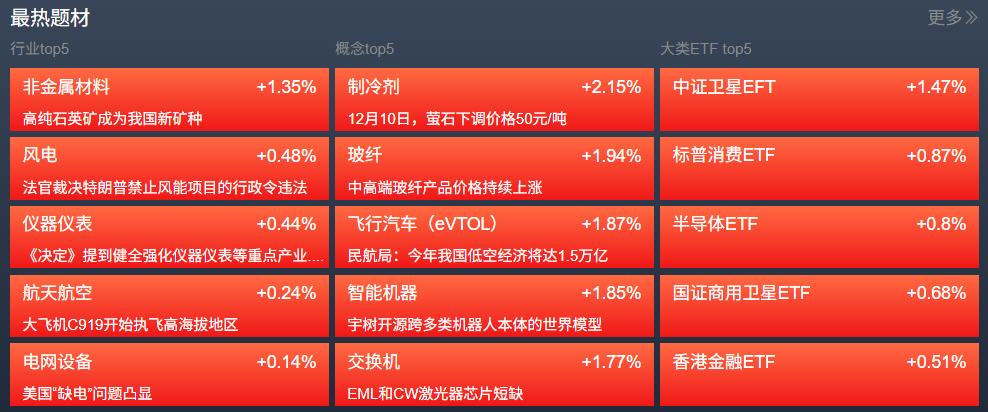美联储降息利好兑现,但“沉默的反对票”更多了,引发了市场担忧;同时,日本央行前官员预计到2027年或将有四次加息,导致全球市场齐调整。结构上看,马斯克确认了“SpaceX计划明年通过首次公开募股(IPO)筹集数百亿美元资金”的消息,刺激商业航天概念逆市涨停潮。