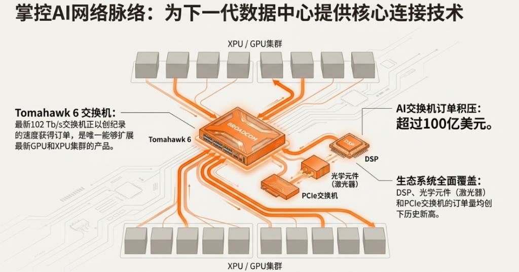 - 定制AI芯片(XPU)业务拓展:公司成功赢得第五家XPU客户,并获得了价值10亿美元的订单。同时,现有客户Anthropic也追加了110亿美元的大额订单,显示出市场对公司定制AI加速器方案的高度认可。