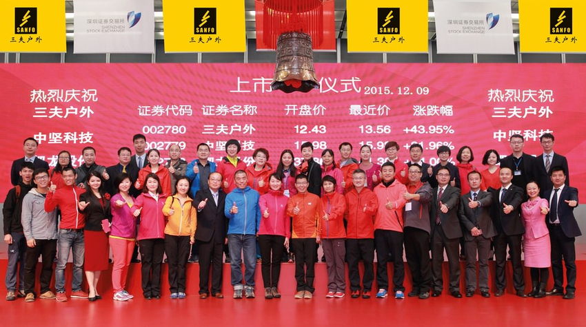 第一个时刻是2015年三夫户外在深交所敲钟,成为中国户外用品零售第一股。