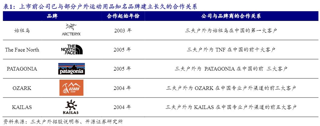 此外,patagonia、Marmot、Mammut、Columbia和凯乐石也都与三夫户外有合作关系。