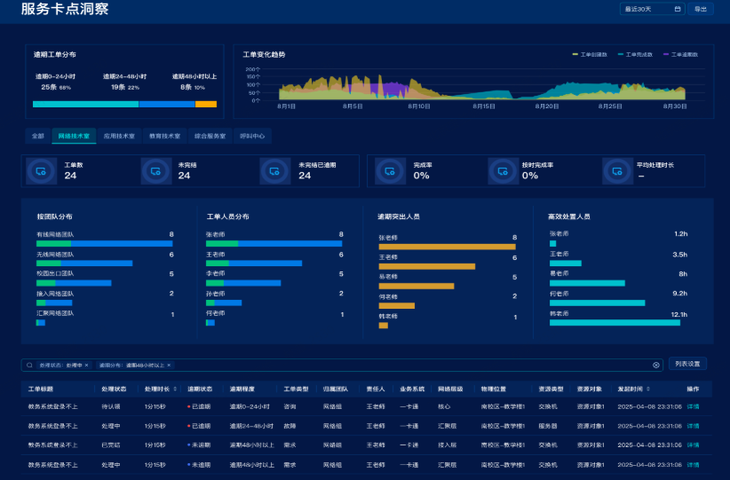 价值体现:平均故障响应时间从小时级缩短至分钟级,师生满意度提升40%,实现了服务流程的标准化与透明化。
