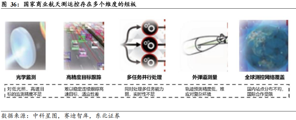 测运控服务配套体系不完善,天地一体化建设任务艰巨。我国测运控的规模发展、技术迭代、资源配置等方面尚与国际领先水平存在差距。从规模发展来看,国内商业测运控公司仍处于早期发展阶段,目前相关企业仅有10余家,整体规模与未来商业航天发展需求不匹配,供需矛盾突出。从技术迭代来看,中国测控技术仍依赖传统模式,缺乏创新和灵活的服务模式。从资源配置来看,国内70余付天线大部分集中在西部和东北地区,覆盖面有限,区域间资源配置不均,且天线口径多在3.7米-7.3米之间,缺乏火箭发射测控所需的光学、外弹道测量和安全控制设备。