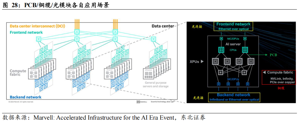 数据中心内部互联主要包含PCB/铜缆/光模块三种方案, PCB更新迭代和光连接在机柜内部的渗透引发市场对于铜缆生存空间与生命周期的担忧。