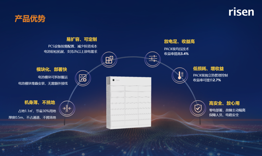 本次活动现场,东方日升预告了即将上市的Stack Power堆叠式储能一体机,让客户提前了解其更灵活、更高效的应用潜力。这是继Risen Stack1之后,东方日升堆叠系列推出的第二款新品,Stack Power不仅延续了堆叠式架构的模块化优势,并重点在 结构设计、设备性能与智能安全,三大方向进行了全面升级: