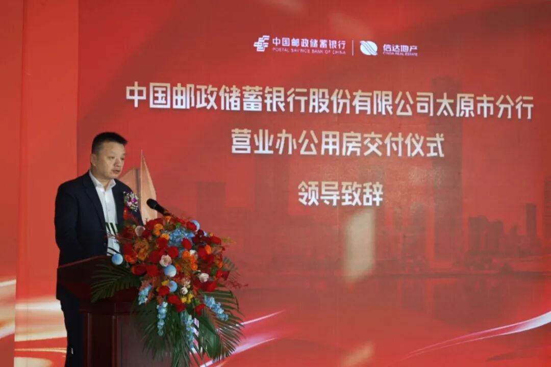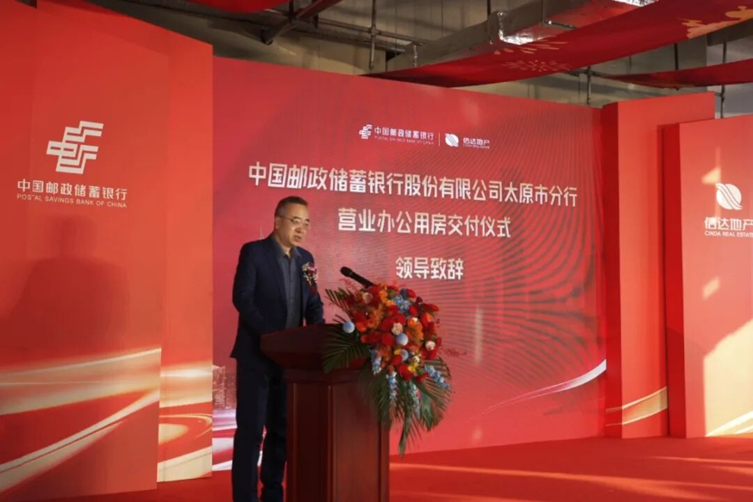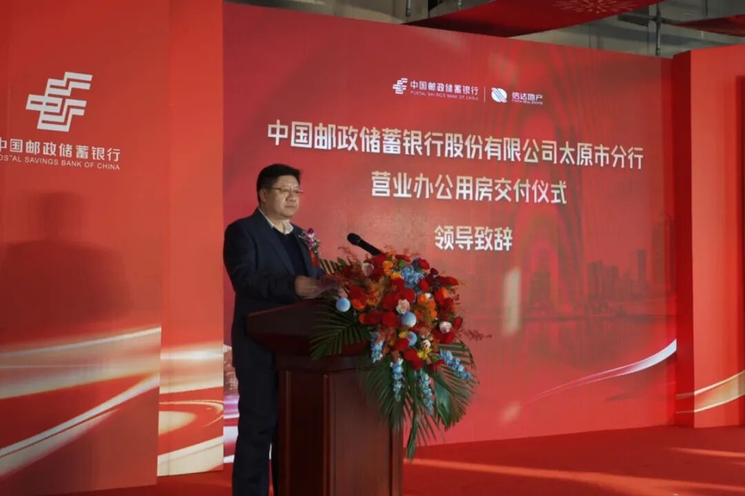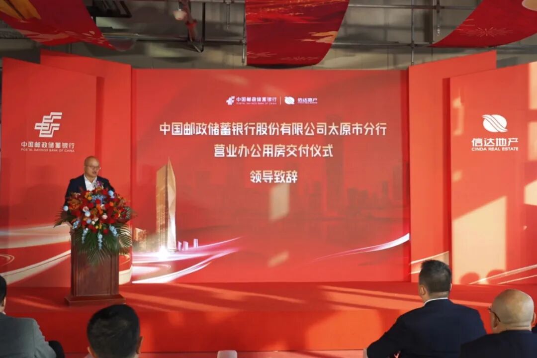 刘忠斌代表信达地产北方区域公司向莅临本次交付仪式的领导嘉宾表示感谢,并向中国邮政储蓄银行太原分行入住表示衷心的祝贺。他表示,北方区域公司将继续发挥资源整合优势,为中国邮政储蓄银行太原分行运营提供全方位支持,推动金融资源与区域产业需求深度对接,实现“楼宇赋能银行、银行服务产业”的良性循环。