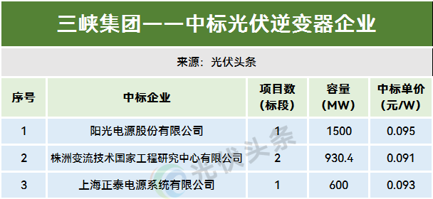 2月25日,三峡集团2024年光伏逆变器框架集中采购(第二批次)确定中标人,阳光电源、中车时代电气(株洲变流)、正泰电源中标。