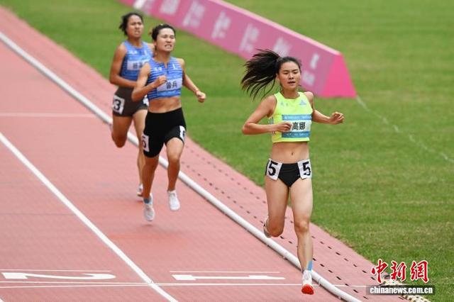 12月12日,全国第十二届残疾人运动会暨第九届特殊奥林匹克运动会田径项目在位于广州的广东奥林匹克体育中心继续开展,陕西队高娜在女子800米听障决赛中夺金。图为高娜冲刺终点。中新社记者 陈楚红 摄